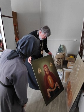 Архиепископ Благовещенский и Тындинский Лукиан посетил с рабочим визитом иконописную мастерскую Среднебельского Албазинского женского монастыря, в которой монахини-художницы создают иконы для храмов Благовещенской епархии. Сейчас они завершают работу над списком чудотворного Ченстоховского образа Божией Матери. Икона станет главной святыней Богородицкого храма в городе Зея, строительство которого начнется в ближайшее время.