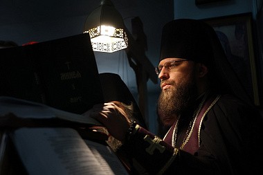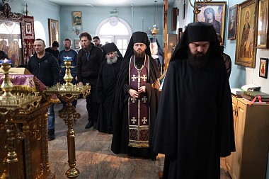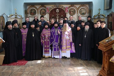Его Высокопреосвященству сослужила братия обители в священном сане.