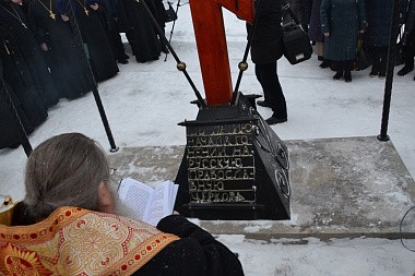 В завершение архиепископ Зосима освятил у входа в святую обитель крест-памятник, установленный к 100-летию начала гонений на Русскую Православную Церковь.