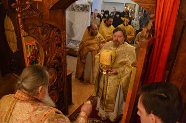 За Божественной литургией в храме Свт. Феофана Соликамского Его Высокопреосвященство совершил хиротонию – в сан иеродиакона рукоположен насельник монастыря инок Зиновий (Романов).