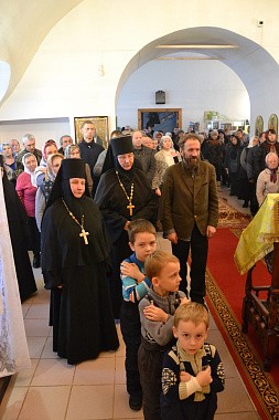 За богослужением молились настоятельницы женских обителей Соликамской епархии: Спасо-Преображенского монастыря г. Усолье игумения Ариадна (Плюснина) и Иоанно-Предтеченского Красносельского монастыря г. Соликамска игумения Варвара (Сухинина).