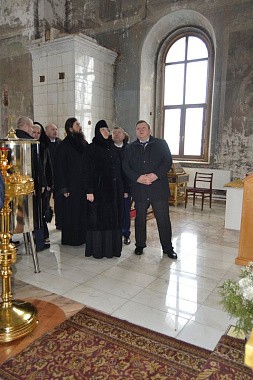 Высокого гостя встречали и сопровождали епископ Переславский и Угличский Феодор, первый заместитель председателя правительства Ярославской области В.Г. Костин, главный федеральный инспектор по Ярославской области В.Ф. Несветайлов, и.о главы Угличского муниципального района Ю.Н. Кусакина и другие официальные лица.