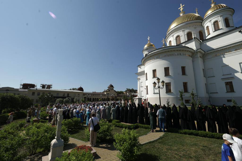 Тысячи верующих собрались на территории Александро-Невского Ново-Тихвинского монастыря разделить радость этого дня и соборно вознести молитвы Матери Божией пред Ее святым образом.