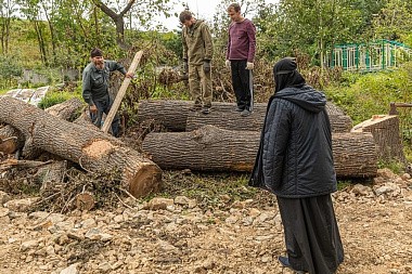 Силами братии были произведены распил и уборка корней, стволов и ветвей поваленных и поврежденных ветром деревьев, а также уборка территории Марфо-Мариинской обители.