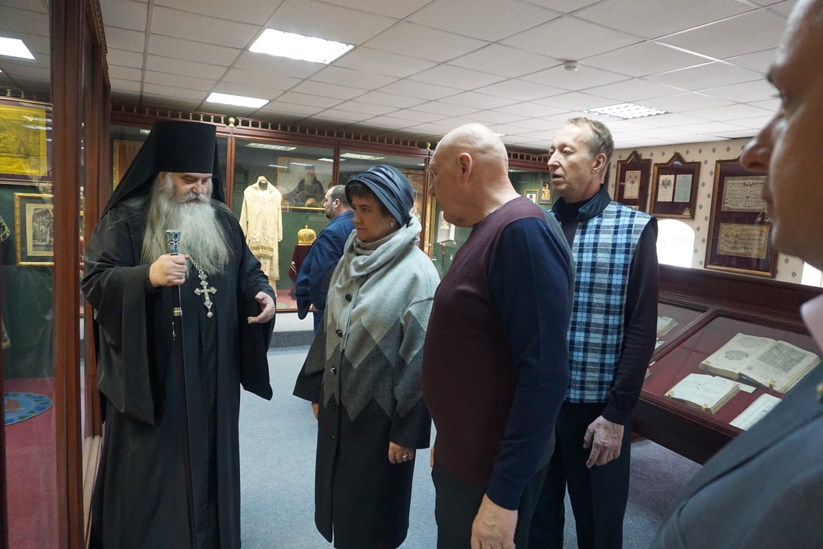 В завершение осмотра экспозиции в залах музея состоялись переговоры между архимандритом Тихоном и руководителями Благотворительного фонда «Возрождение культурного наследия» А.Н. Паниным и С.Я. Ваксманом о новых совместных проектах на базе музея в 2018–2019 годах.