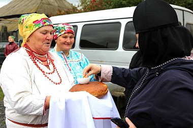 Сестер из Свято-Троицкого Серафимо-Дивеевского монастыря встретили в Арге хлебом-солью. Монашествующие сестры тоже постарались: поприветствовали хозяев на мокшанском языке. Местные жительницы надели яркую национальную одежду и украшения, как обычно это делают в торжественных случаях, и устроили обед, в меню которого были национальные блюда, например, пышные вкусные лепешки, сделанные из манной крупы. Во время трапезы прозвучали необыкновенно красивые, напевные народные песни, в которых картины природы тесно связаны с жизнью героев, их волнениями и тревогами. Как это принято у мокшан, каждую песню начинала верх кричащая – вери ювади, и это придавало пению потрясающую достоверность, было впечатление, что все происходит в те времена, когда здесь жили святые сестры Тестовы.