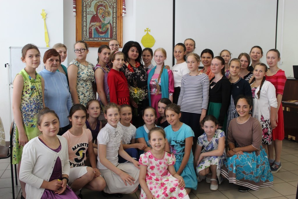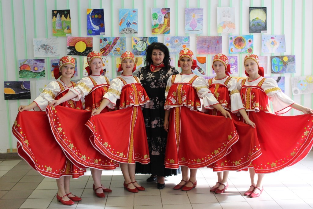 После полдника девочки организовали для гостьи настоящий концерт. Исполнялись песни времен Великой Отечественной войны, песни Победы. Участницы военно-патриотического клуба в честь святителя Николая исполнили казачьи песни «Сама казака провожала» и «Любо мне, когда Дон разливается...». Старшие воспитанницы и студентки Центра православных медиа, входящие в основной, старший, состав хора «Отрада», исполнили произведения русских композиторов. Также девочки из среднего состава хореографического ансамбля «Отрада» представили плясовую танец-песню «Я на печке молотила» и другие танцы.