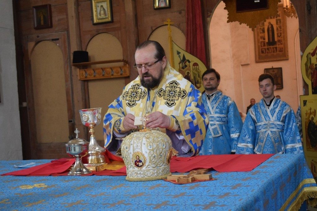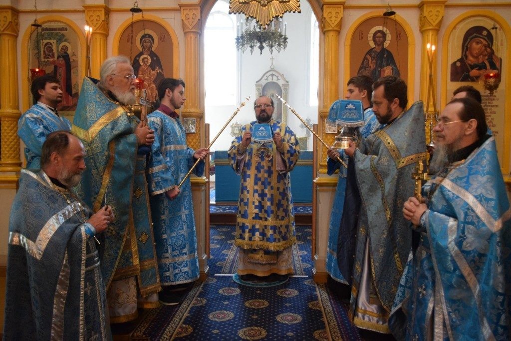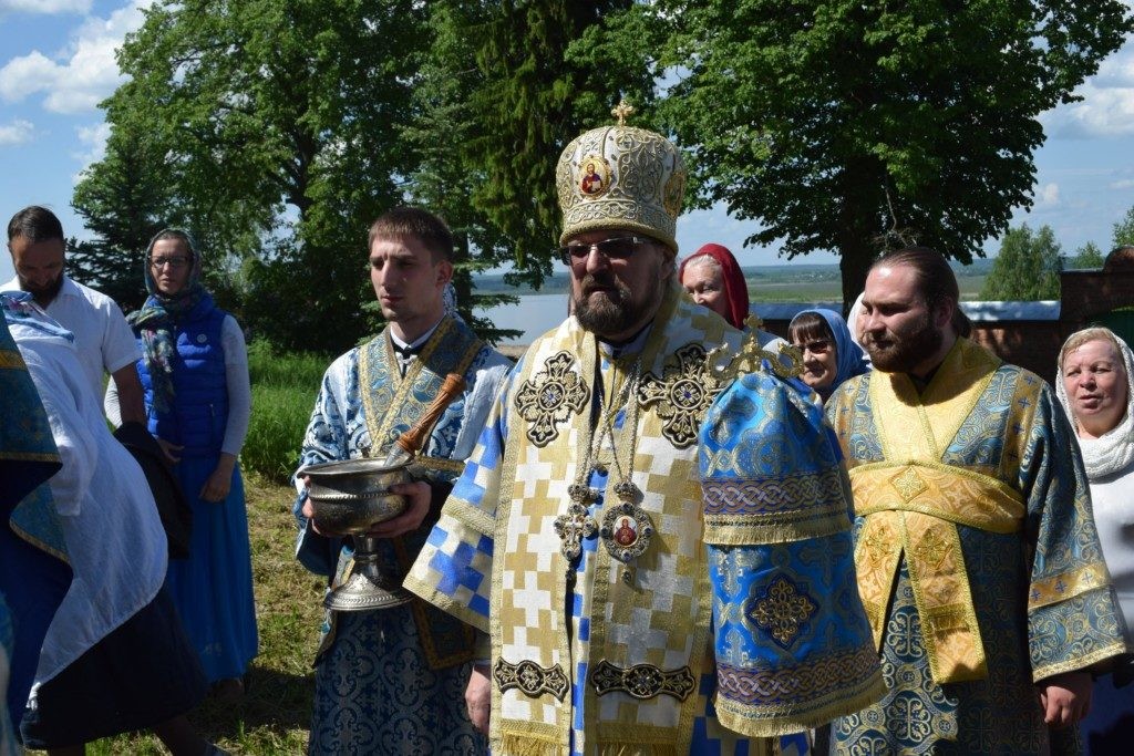 Его Преосвященству сослужили: благочинный церквей Чухломского района протоиерей Александр Смирнов, и. о. настоятеля обители иеромонах Михаил (Позднев), благочинный церквей Парфеньевского округа протоиерей Виталий Воскресенский, клирик Преображенского собора г. Солигалича протоиерей Николай Андреянов, настоятель храма прп. Серафима Саровского с. Палкино протоиерей Сергий Кружнов, настоятель храма свт. Николая с. Николо-Полома протоиерей Александр Иванов, настоятель храма Воскресения Христова поселка Судай иерей Максим Трофимов, клирик обители иеромонах Авраамий (Авдеев).