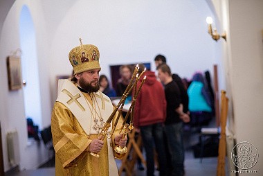Накануне вечером Его Преосвященство возглавил всенощное бдение в этом же храме обители.