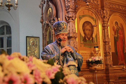 Затем Его Преосвященство обратился к сослужившему духовенству и молящимся с архипастырским словом.