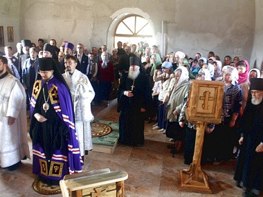 Затем Его Преосвященство обратился к духовенству, братии монастыря и паломникам из Мурманска, Череповца и Кадуя с архипастырским словом.