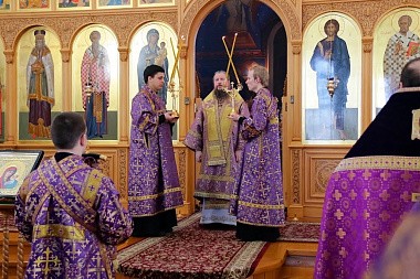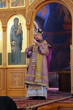 По заамвонной молитве архипастырь совершил славление празднику с чтением молитвы перед иконой главы пророка Иоанна Предтечи и обратился к верующим со словом назидания.
