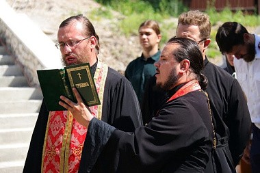 По окончании богослужения у монастырского корпуса архипастырь обратился ко всем собравшимся с кратким словом назидания, отслужил заупокойную литию по благоверному царевичу Иакову, а также совершил молитву о том, чтобы Господь помог археологам в предстоящих раскопках на месте предполагаемого захоронения останков блаженного царевича Иакова Касимовского.