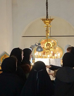 Затем участники богослужения были приглашены на трапезу. Владыка Дионисий совершил чин о панагии, сестры исполнили песнопения. Во время трапезы монахиня прочла сказание о Введении во храм Пресвятой Богородицы, а затем о чудесных случаях из житий монахов древности из книги «Благолюбие».