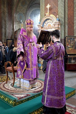 10 апреля 2019 года, в среду 5-й седмицы Великого поста, викарий Липецкой епархии епископ Усманский Евфимий совершил Литургию Преждеосвященных Даров во Владимирском соборе Задонского Рождество-Богородицкого мужского монастыря.