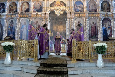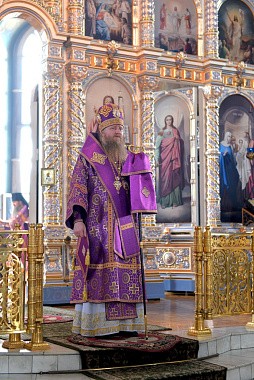 Его Преосвященству сослужили: благочинный монастыря архимандрит Трифон (Голубых), духовенство обители.