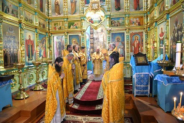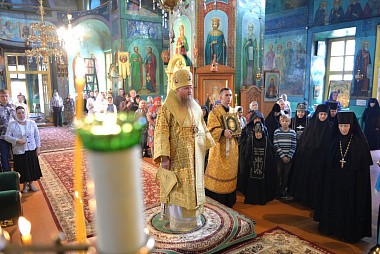 Викарию Липецкой епархии сослужили благочинный Тербунского церковного округа протоиерей Роман Максимчук, настоятель Преображенского храма г. Липецка протоиерей Константин Баязов и клирики обители.