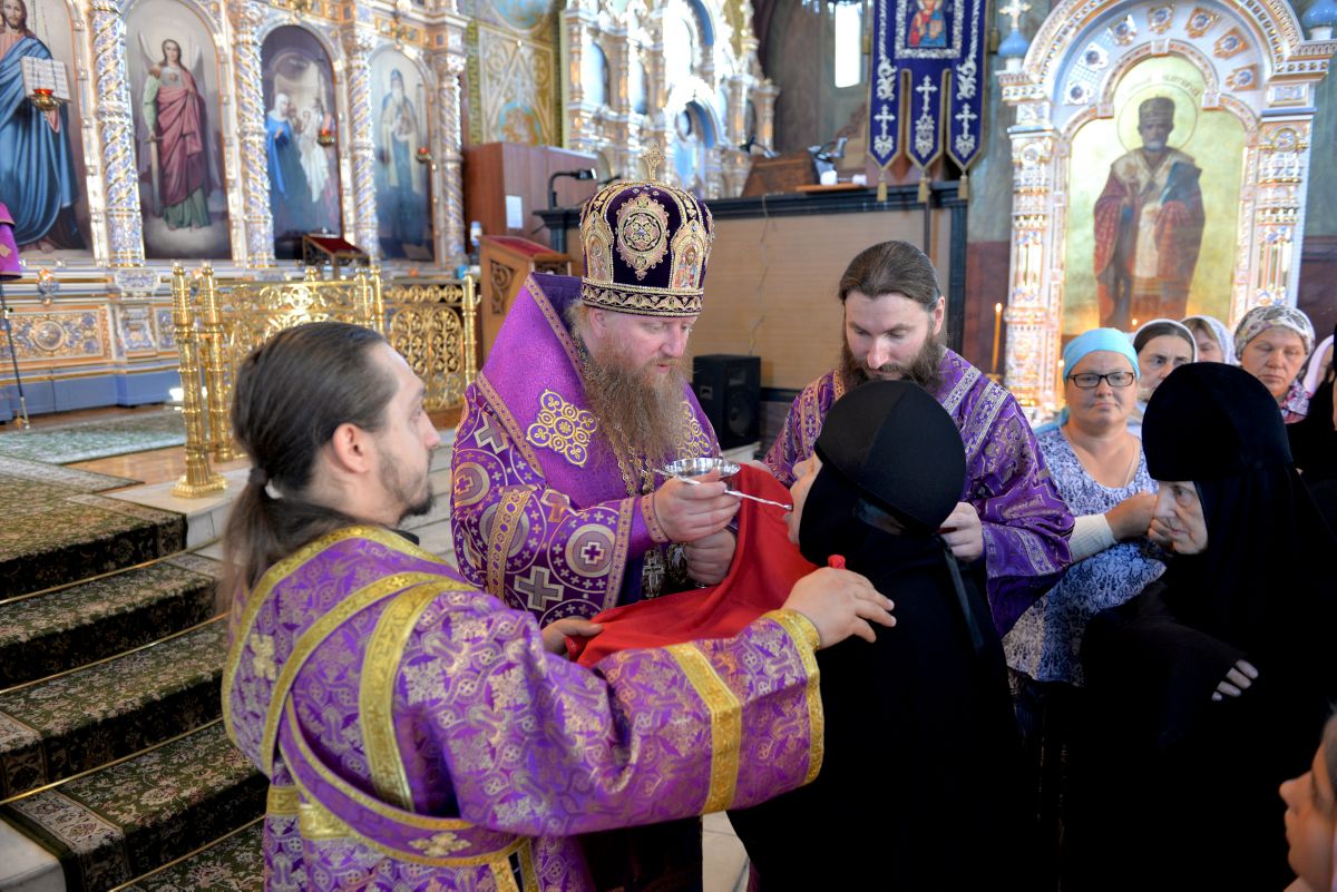 По завершении Божественной литургии епископ Евфимий произнес проповедь перед насельниками и паломниками обители.