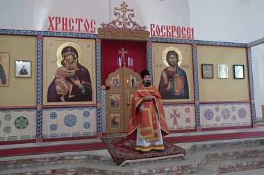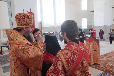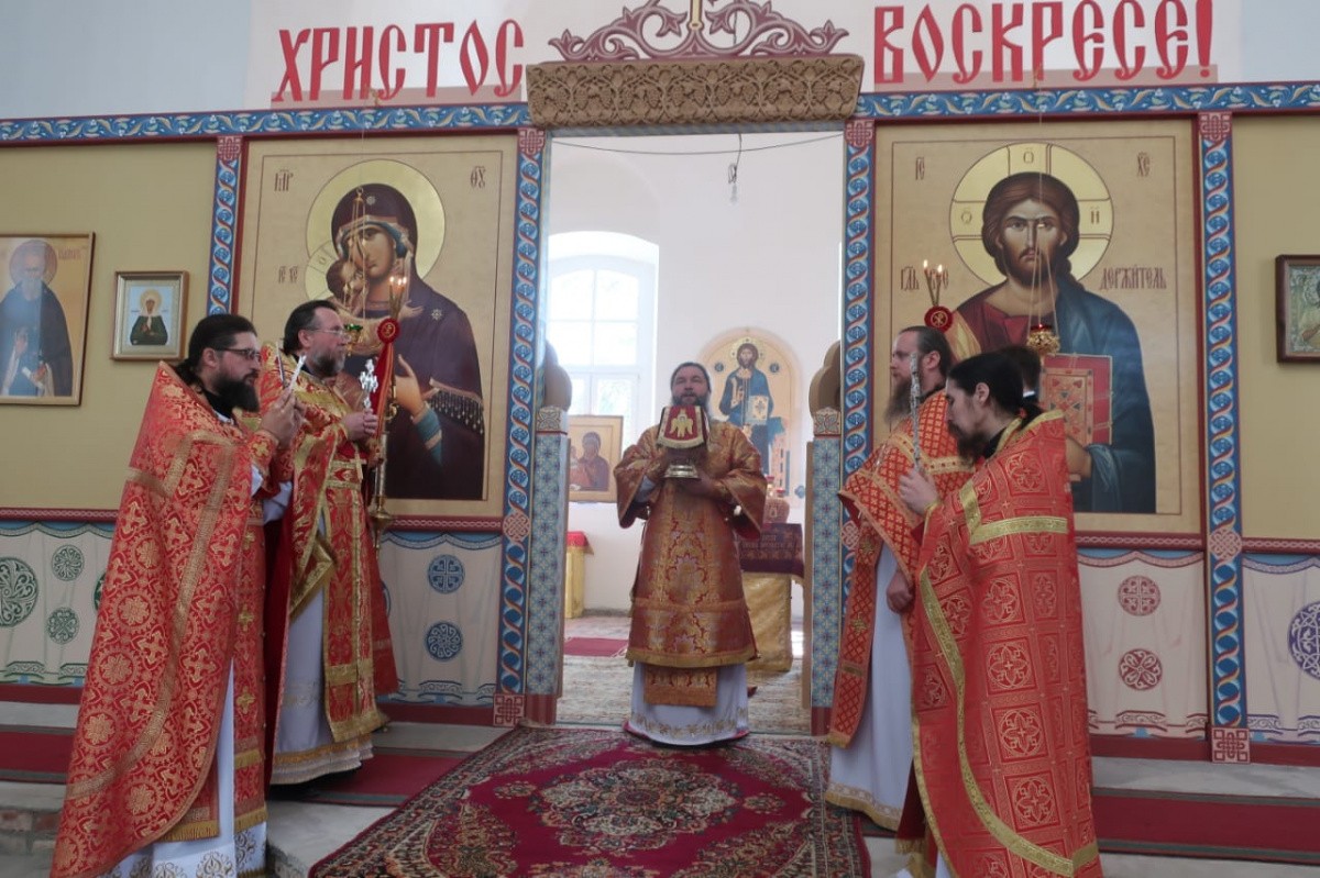 Его Преосвященству сослужили благочинный Монастырского округа иеромонах Евфимий (Репьёв), руководитель епархиального Миссионерского отдела иерей Алексий Бессонов, клирики Скорбященского женского монастыря.