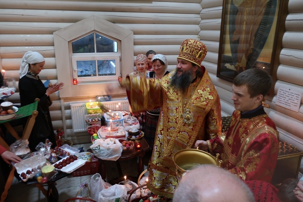 В ночь с 7 на 8 апреля 2018 года, в праздник Светлого Христова Воскресения, епископ Среднеуральский Евгений, викарий Екатеринбургской епархии, совершил праздничное пасхальное богослужение в Державном храме монастыря Святых Царственных страстотерпцев в урочище Ганина Яма.