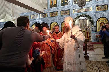 В ходе праздничного богослужения состоялось принесение в храм частицы Благодатного огня, который доставили со Святой Земли в Екатеринбург паломники в составе епархиальной делегации. Все присутствующие в храме смогли возжечь от него свечи и лампады.