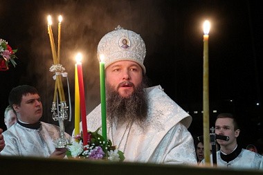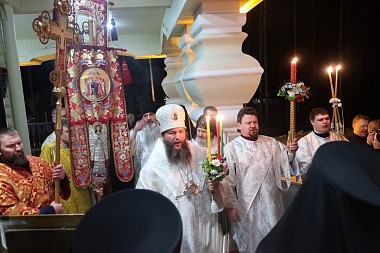 За богослужением епископ Евгений зачитал Слово свт. Иоанна Златоустого, а затем огласил Пасхальные послания Святейшего Патриарха Московского и всея Руси Кирилла и митрополита Екатеринбургского и Верхотурского Кирилла и поздравил от себя всех молящихся с Пасхой.