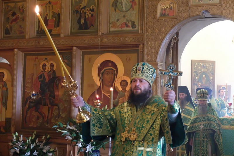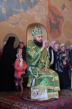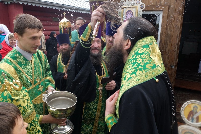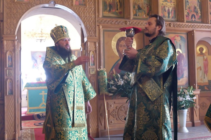 Престольный праздник собрал множество молящихся, поэтому причащение Святых Христовых Таин совершалось из трех Чаш.