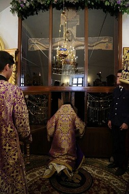 По окончании Божественной литургии было совершено поклонение Животворящему Кресту.