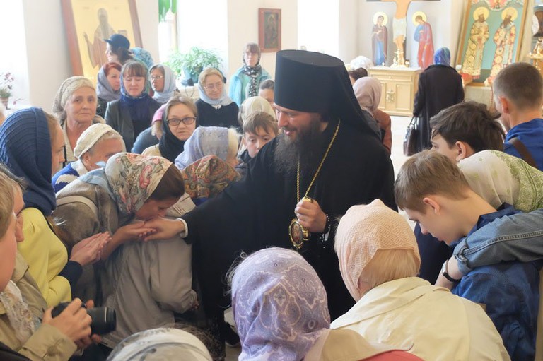 Его Преосвященству сослужили секретарь Ярославской епархии и настоятель храма Параскевы Пятницы г. Ярославля архимандрит Адриан (Денисов), благочинный приходов Центрального городского округа г. Ярославля и настоятель храма Вмч. Димитрия Солунского г. Ярославля протоиерей Олег Косолапов, настоятель монастыря игумен Никодим (Федоров), руководитель Отдела религиозного образования и катехизации Ярославской митрополии и настоятель Сретенского храма г. Ярославля протоиерей Павел Рахлин, руководитель Социального отдела Ярославской епархии и настоятель Вознесенско-Благовещенского храма г. Ярославля иеромонах Агафангела (Шкуранков) и крилики Ярославской и Переславской епархий.