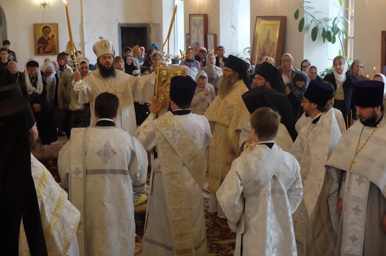 За богослужением молились настоятельница Свято-Введенского Толгского женского монастыря игумения Варвара (Третьяк) с сестрами обители.