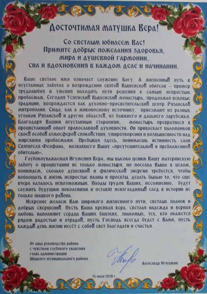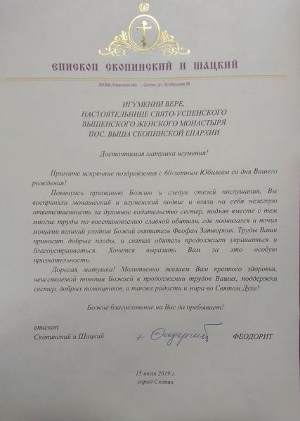 15 июля 2019 года епископ Скопинский и Шацкий Феодорит совершил Божественную литургию в Успенском Вышенском женском монастыре п. Выша Шацкого района.