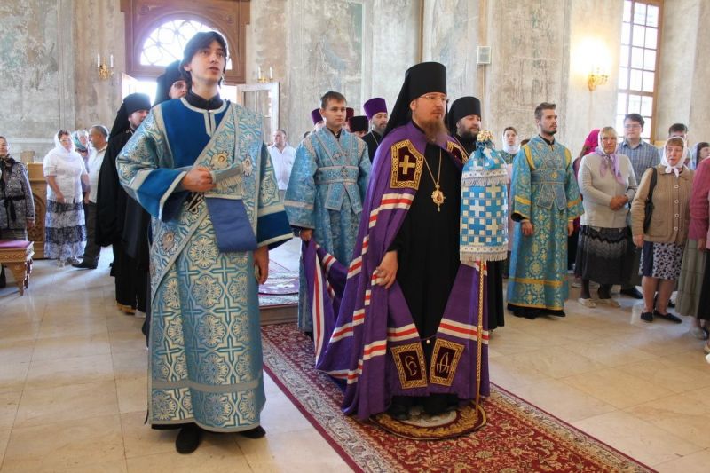 Его Преосвященству сослужили: и.о настоятеля Николо-Чернеевского мужского монастыря архимандрит Феодосий (Иванов), ректор Тульской духовной семинарии игумен Евфимий (Моисеев), клирик Успенского монастыря п. Выша игумен Пимен (Баханов), благочинный Шацкого округа игумен Серафим (Сергеев), благочинный Путятинского округа игумен Феодорит (Долгов), настоятель Троицкого храма с. Польное-Ялтуново протоиерей Филипп Квасный, настоятель Архангельского храма с. Желанного протоиерей Николай Иванов, настоятель Никольского храма с. Темешева протоиерей Валерий Грибов, настоятель Казанского храма с. Лесное-Конобеево протоиерей Георгий Коняев, настоятель Никольского храма г. Шацка протоиерей Андрей Кондаков, клирик Никольского храма г. Ряжска иеромонах Антоний (Лаус), настоятель Никольского храма с. Борки иерей Сергий Скрипко, клирик Успенского женского монастыря иерей Иоанн Крючков, клирик Христорождественского храма г. Ряжска диакон Валентин Мишаков, клирик Сретенского кафедрального собора г. Скопина диакон Александр Скворцов, насельник Свято-Духова мужского монастыря г. Скопина иеродиакон Тихон (Дыда).