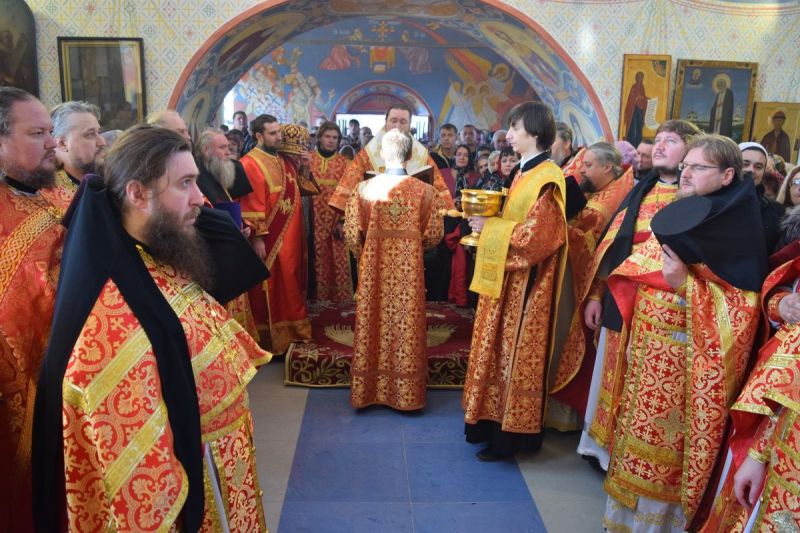 Празднование началось с чина обновления храма Великомученика Димитрия Солунского, где закончились восстановительные работы по настенной росписи и установке иконостаса.