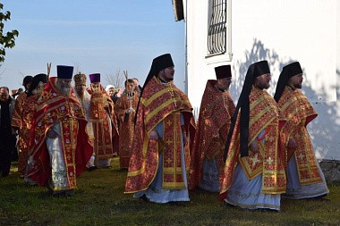 Его Преосвященству сослужили: настоятель монастыря игумен Амвросий (Калабухов); благочинный Милославского округа протоиерей Валерий Хиров; настоятель храма Иконы Божией Матери «Спорительница хлебов» п. Южный Милославского района протоиерей Владимир Горлов; клирик Рязанской епархии протоиерей Илья Коростылев;