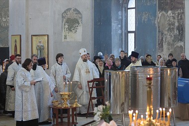 По заамвонной молитве Его Преосвященство совершил чин великого освящения воды.