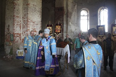 Его Преосвященству сослужили клирики Череповецкой епархии: протоиерей Константин Лобанов, игумен Иов (Чернышев), иеромонах Марк (Шляхтин), иереи Сергий Бондарь, Михаил Селиверстов и Сергий Щербаков.