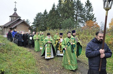По окончании Литургии участники богослужения совершили крестный ход к восстанавливаемому храму Покрова Богородицы, где владыка Флавиан обратился к прихожанам с архипастырским словом и поздравил с памятью преподобного Иродиона.
