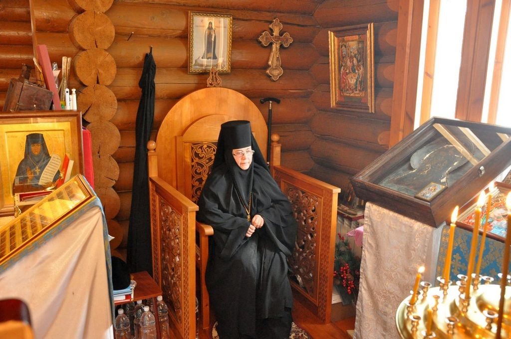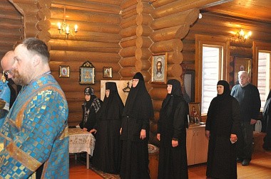 По окончании Литургии владыка Флавиан поблагодарил настоятельницу монастыря игумению Кириллу (Червову) с сестрами, духовенство и прихожан храма и поздравил с праздником.