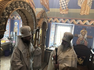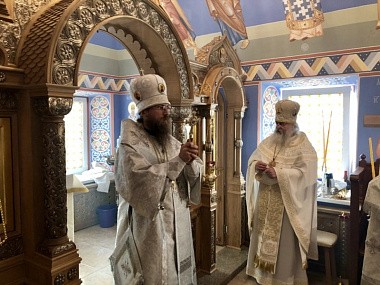 В богослужении участвовали наместник Свято-Троицкого мужского монастыря архимандрит Василий (Паскье) и казначей обители игумен Тихон (Першев).