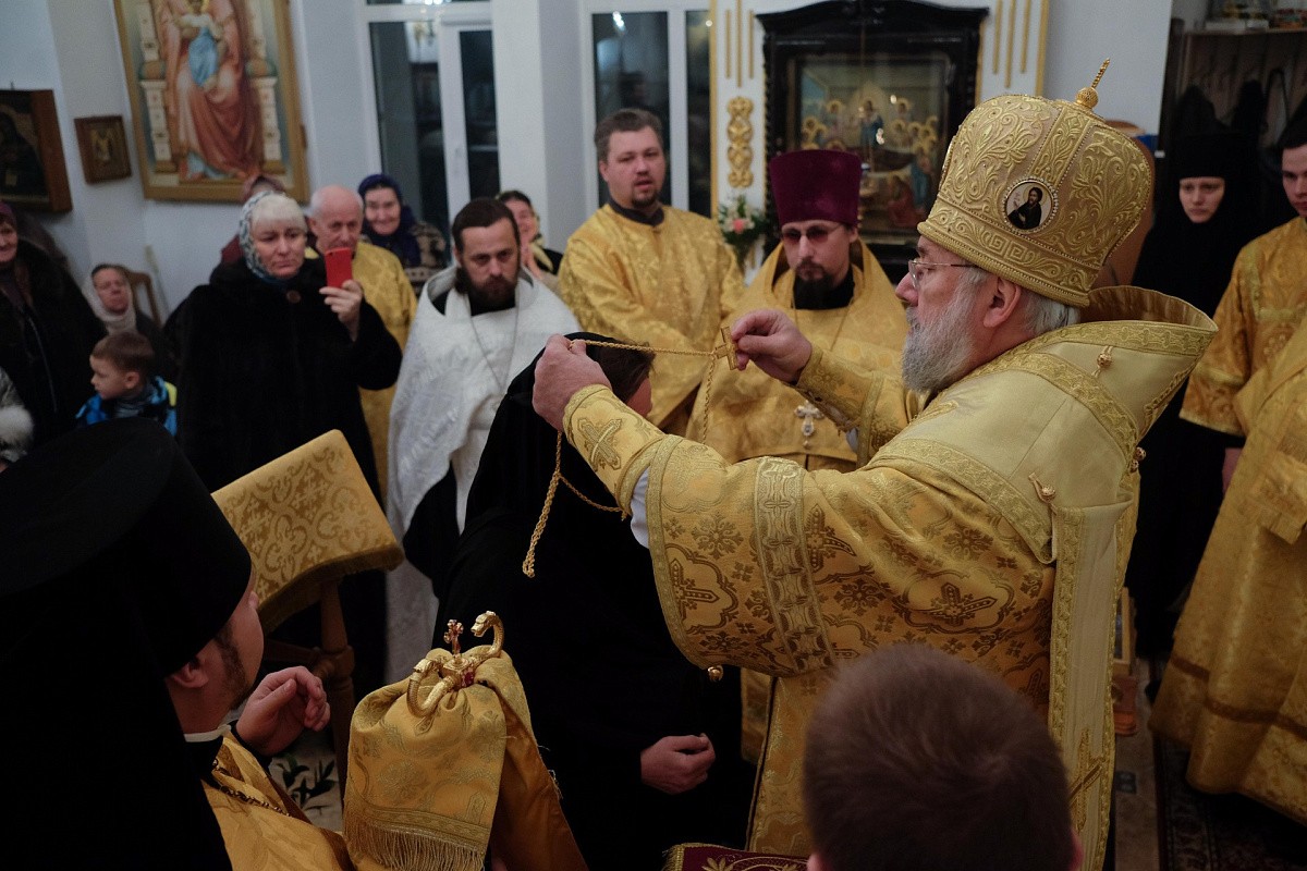 Во время полиелея по прочтении Евангелия владыка обратился к верующим с архипастырским словом и преподал благословение.