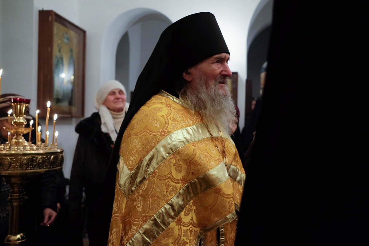 Его Преосвященству сослужили секретарь епархии иеромонах Даниил (Колесников), игумен Свято-Успенского Косьмо-Яхромского мужского монастыря Серафим (Котенев).