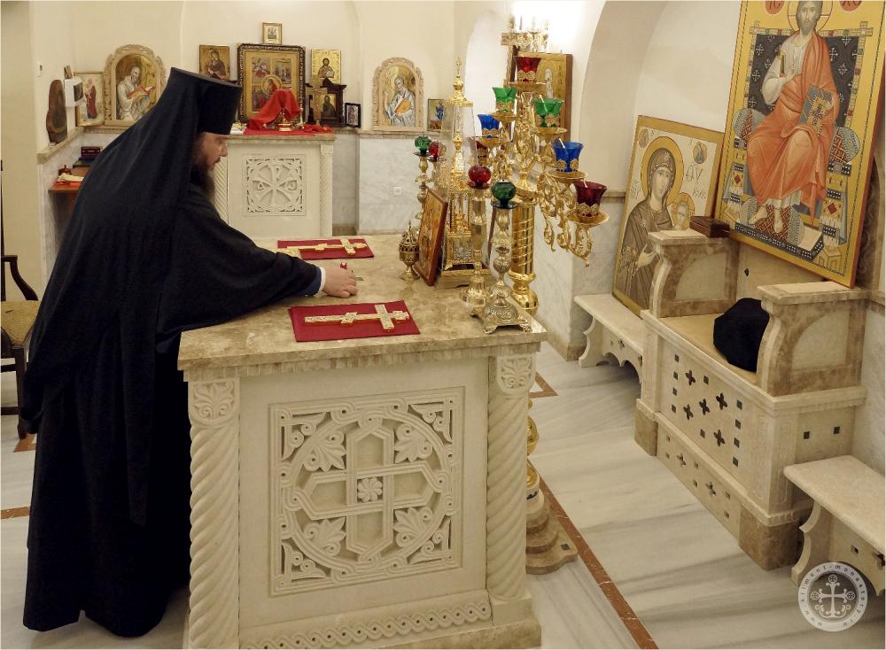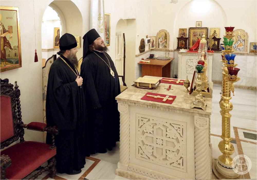 Преосвященного владыку в портале надвратного храма встретил наместник монастыря игумен Варнава (Шкурдода). Отец наместник сопроводил епископа Бахчисарайского Каллиника для поклонения святыням обители, рассказал о храмоздательстве и благоукрашении монастыря, после чего в трапезной было поставлено чаепитие и угощения.