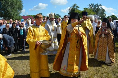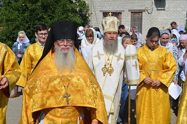 Его Преосвященству сослужили иеромонах Тихон (Пронников), благочинный Чаплыгинского церковного округа иерей Артемий Мишин и клирики обители.