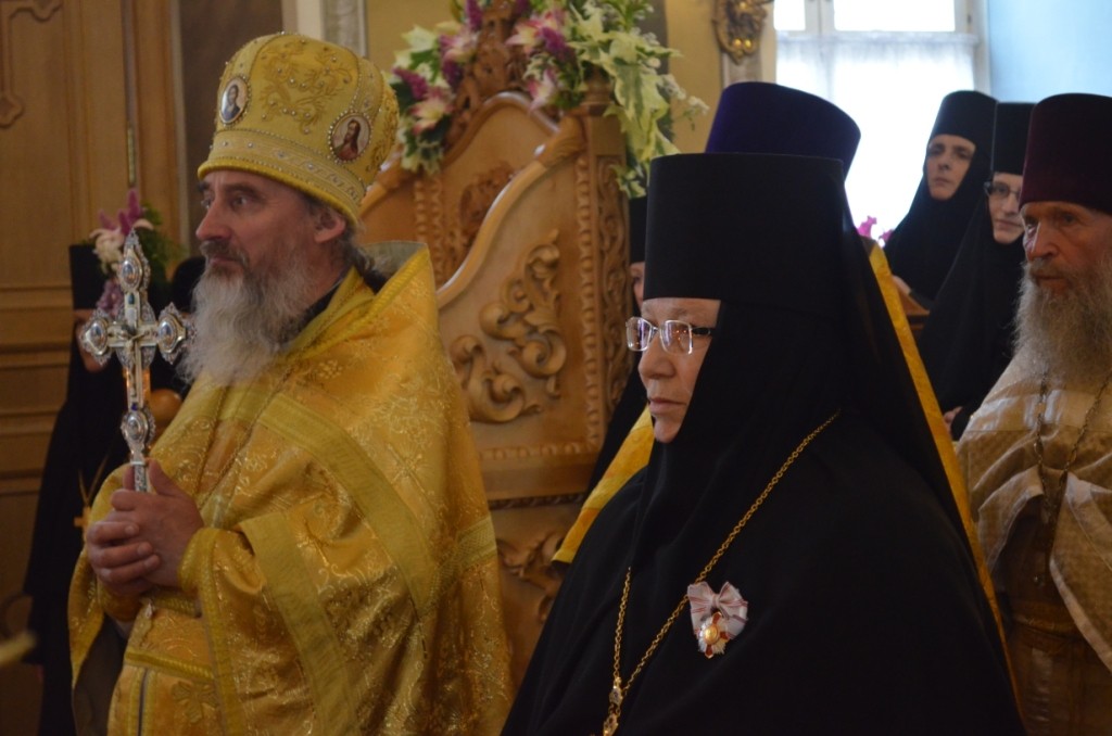 На малом входе епископ Матфей вручил игумении Ольге орден Русской Православной Церкви преподобной Евфросинии, великой княгини Московской, третьей степени. Этой высокой награды игумения Ольга удостоена указом Святейшего Патриарха Московского и всея Руси Кирилла во внимание к усердным трудам на благо Святой Церкви и в связи с 70-летием со дня рождения.