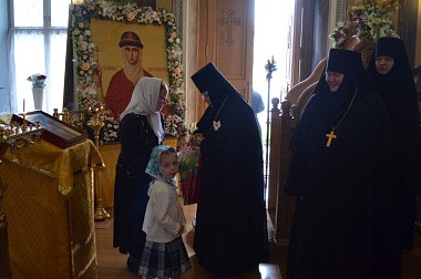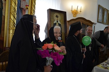 Поздравить игумению Ольгу приехали настоятельница Святоезерской Иверской обители игумения Силуана (Волкова), настоятельница Покровского монастыря г. Суздаля игумения Екатерина (Кожевникова), настоятельница Макариево-Решемского монастыря игумения Феофания (Губайдулина).