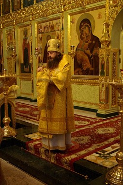 Его Преосвященству сослужили наместник Николо-Шартомского монастыря архимандрит Филипп (Понамарчук) с братией обители в священном сане.