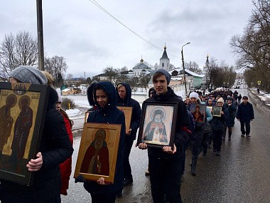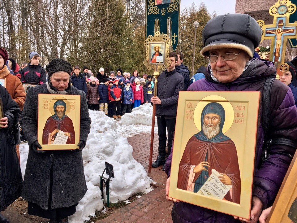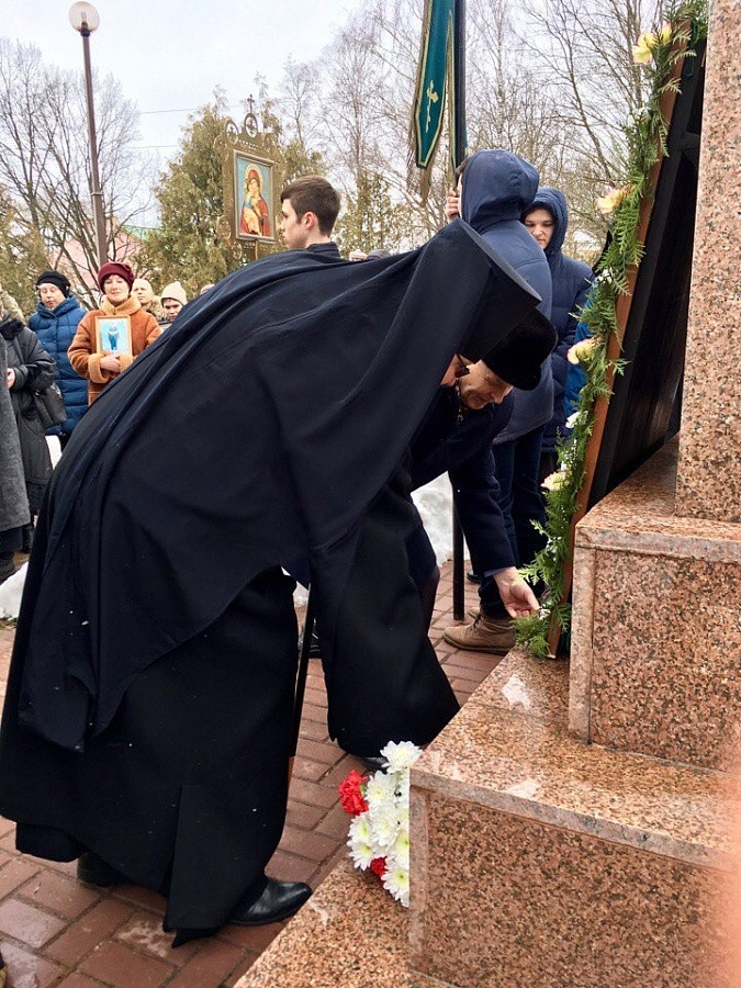 В завершение состоялся крестный ход к памятнику святого благоверного великого князя Ростислава, в котором приняли участие епископ Мелетий, духовенство и клирики епархии, учащиеся Православной гимназии г. Рославля, прихожане монастыря и паломники.