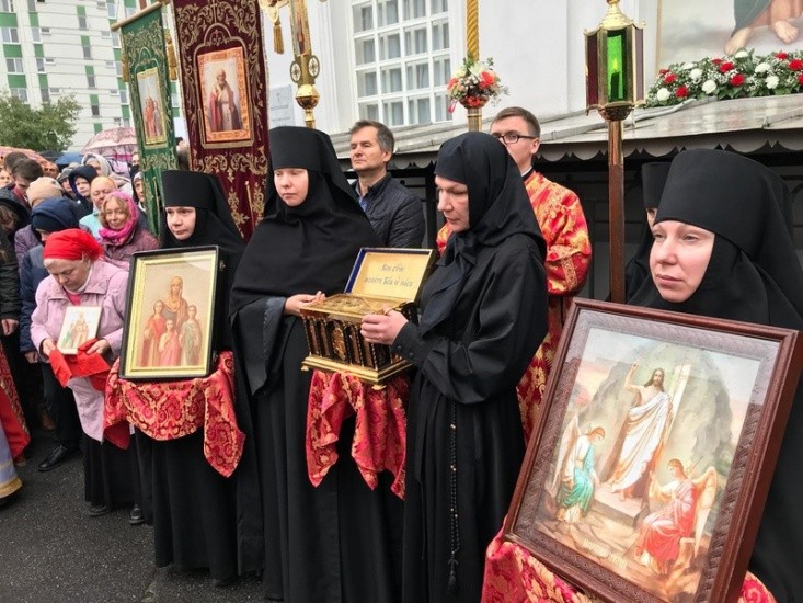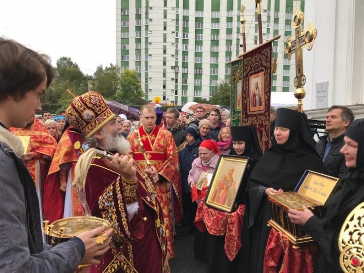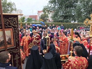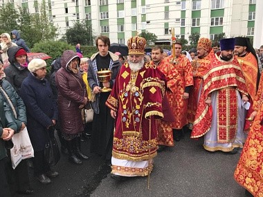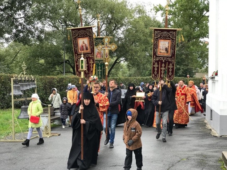 По окончании богослужения Преосвященнейший владыка отслужил торжественный молебен с крестным ходом вокруг храма и прочитал молитву ко святым мученицам.