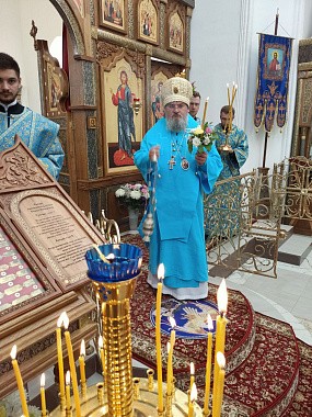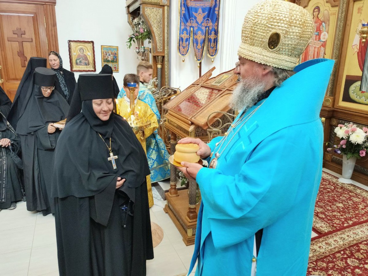 Завершая богослужение, владыка Никита произнес для богомольцев проповедь. Архипастырь поблагодарил матушку игумению за молитвы и труды, которые она вместе с насельницами монастыря несет в благоукрашении святой обители, и вручил ей святую просфору.