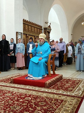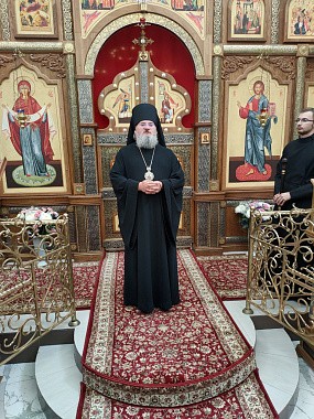 В Успенском соборе обители Преосвященному владыке сослужили: протоиерей Антоний Хатунцев, иерей Андрей Товмасян, диакон Евгений Ковригин, диакон Евгений Васильев и иеродиакон Алексий (Гудименко).